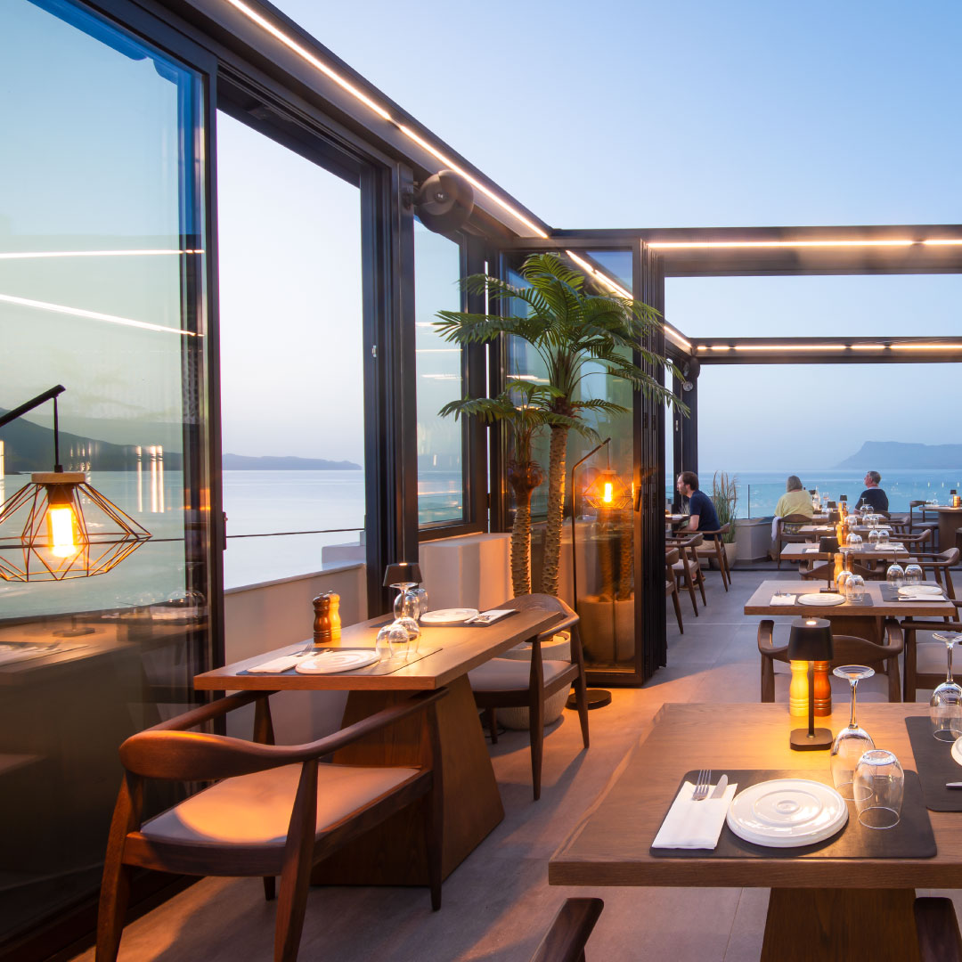 Το Breeze Roof βρίσκεται δίπλα στη θάλασσα και προσφέρει μια μαγευτική γευστική εμπειρία με κομψή διακόσμηση, άνετα καθίσματα και εκπληκτική θέα. Απολαύστε μια ποικιλία από ελληνικά και μεσογειακά πιάτα, συμπεριλαμβανομένων φρέσκων ψαριών και θαλασσινών, που συνδυάζονται τέλεια με το κρασί της επιλογής σας. Το Breeze είναι το τέλειο μέρος για κάθε περίσταση, από απλό δείπνο μέχρι ειδικές εκδηλώσεις και πάρτι. Κάντε κράτηση για το τραπέζι σας σήμερα!